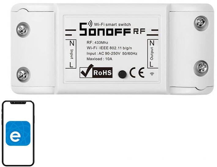 Sonoff RF to niedrogi inteligentny przełącznik WiFi z modułem odbiornika radiowego 433,92 MHz, który umożliwia sterowanie nim za pomocą pilota radiowego. Jest to zdalnie sterowany przełącznik zasilania, który można podłączyć do szerokiej gamy urządzeń. Przełącznik elektryczny Sonoff RF przesyła dane do platformy w chmurze poprzez połączenie WiFi, które umożliwia użytkownikom zdalne sterowanie wszystkimi podłączonymi urządzeniami za pośrednictwem aplikacji mobilnej eWeLink.