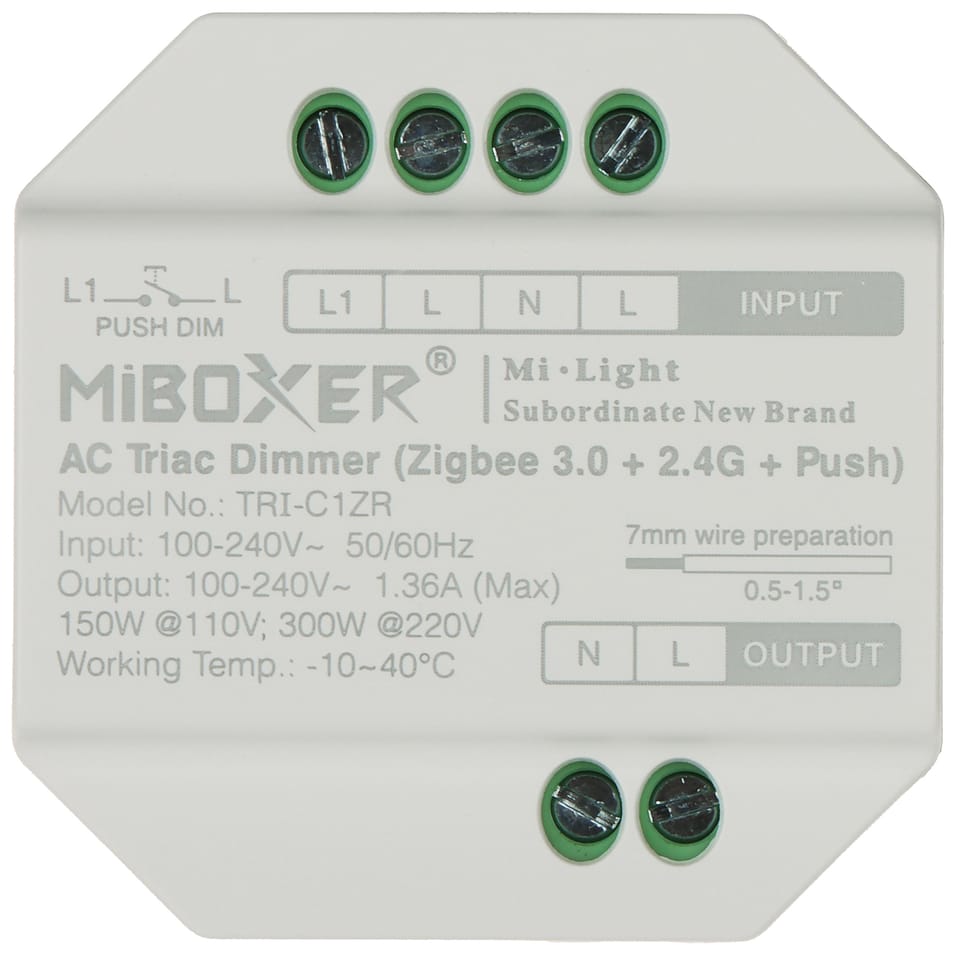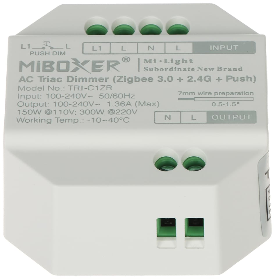 Sterownik TRI-C1ZR umożliwia bezprzewodowe sterowanie oświetleniem za pomocą aplikacji lub fizycznego przycisku podłączonego do urządzenia. Do prawidłowego działania wymagana jest integracja z siecią Zigbee 3.0, co wymaga posiadania bramki Zigbee (sprzedawanej osobno). Sterownik wspiera również lokalne sterowanie za pomocą podłączonego przycisku dzwonkowego, co pozwala na włączanie, wyłączanie oraz ściemnianie oświetlenia.