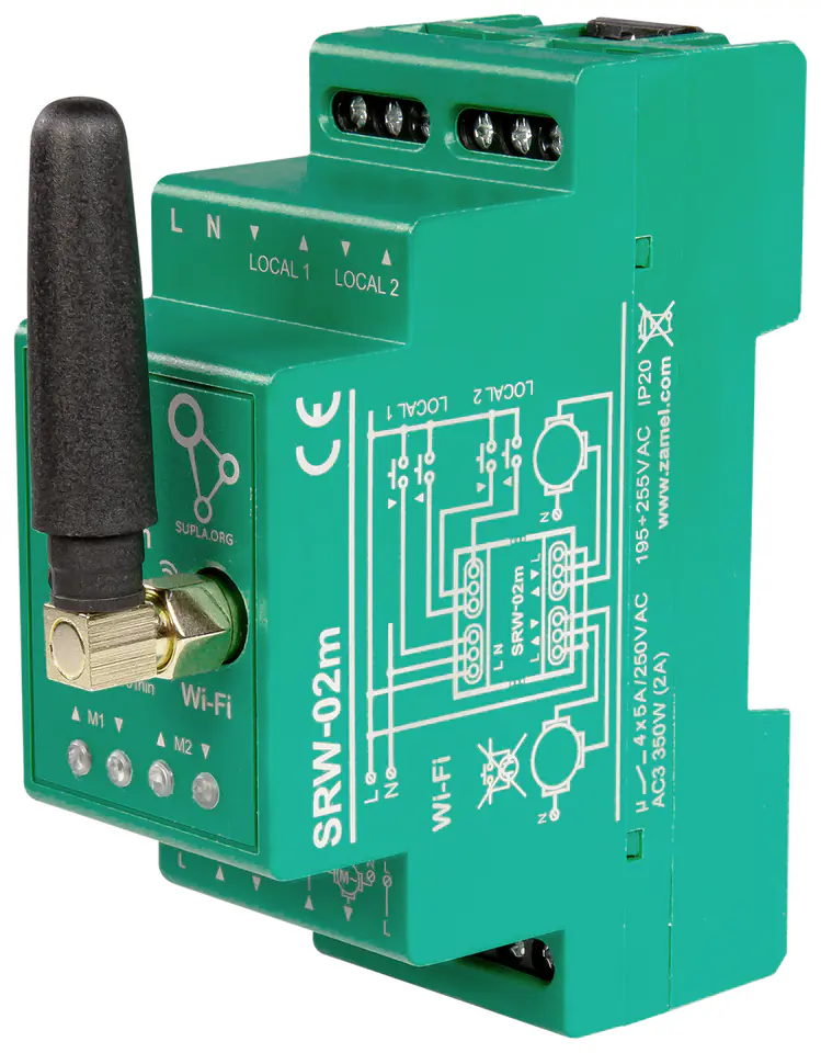 Sterownik SRW-02M umożliwia zdalne sterowanie roletami z ustaleniem określonej pozycji zatrzymania roletMożliwe jest również sterowanie procentem otwarcia lameli w roletach fasadowych oraz sterowanie oknem dachowym, markizą, ekranem rzutnika, a nawet zasłonami