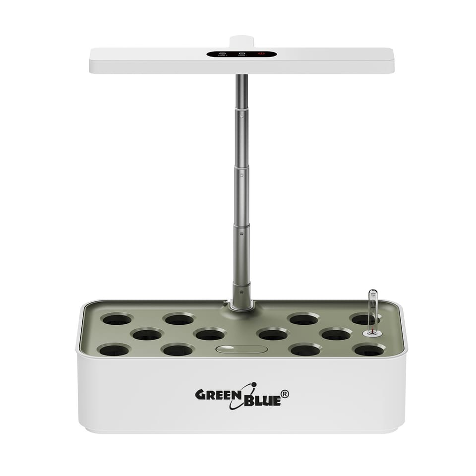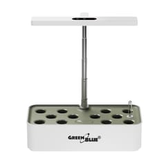 Specyfikacja- Producent: GreenBlue- Model: GB133- Kolor obudowy: biały- Materiały wykonania: ABS, aluminium- Pojemność zbiornika na wodę: 4 litry- Maksymalna liczba roślin: 12- Rodzaj oświetlenia: diody LED full spectrum o wysokim współczynniku PPFD- Tryby oświetlenia: automatyczne ustawienia dla kwiatów lub warzyw- Wymiary: 385x183x180 mm- Regulacja wysokości oświetlenia: od 55 do 315 mm- Sterowanie: dotykowy panel- System nawadniania: cicha pompa (włącza się na 15 minut co 105 minut)- Wskaźnik: poziomu wody w zbiorniku- Przyspieszenie wzrostu: 3–5 razy szybciej niż w tradycyjnej uprawie w ziemi- Zastosowanie: uprawa ziół, warzyw, owoców i kwiatów- Zasilanie: AC 220-240V 50/60Hz 0.4A- Napięcie wyjściowe: 24V 1.0A 24W
