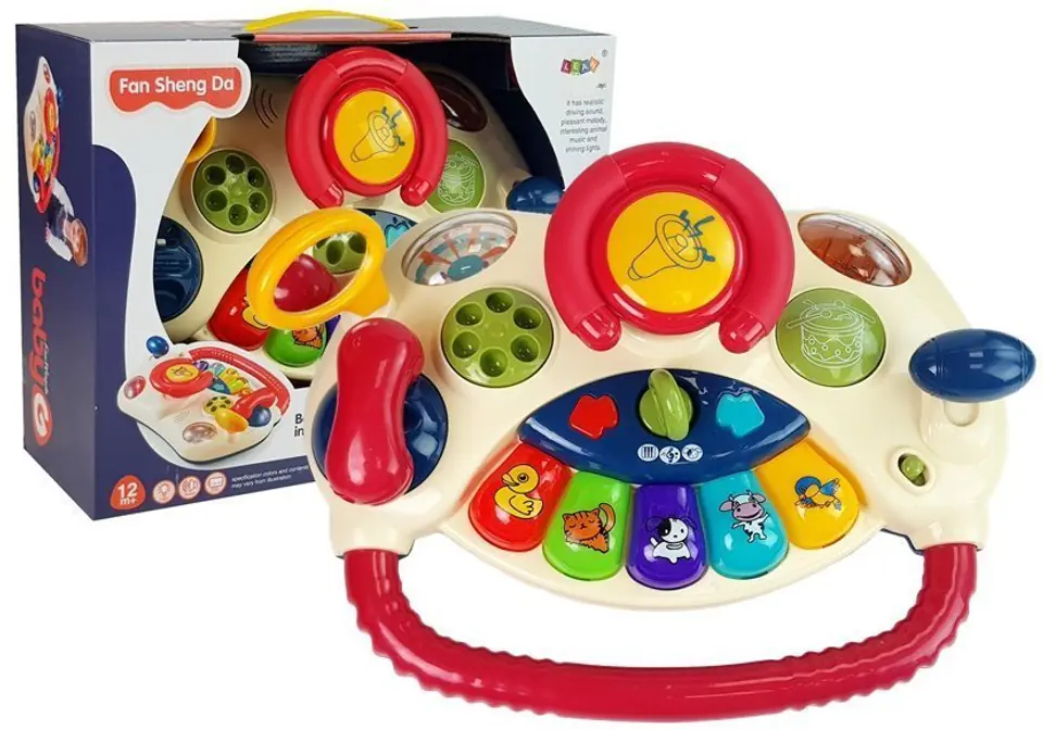 Prezentowana zabawka edukacyjna to idealny produkt na pierwsze miesiące życia maluszka. Kierownica wyposażona w kolorowe przyciski sprawi dziecku wielką przyjemność, kiedy dotknięcie wybranego elementu będzie skutkowało pojawieniem się światełek i dźwięków zabawa jest jeszcze lepsza. Dziecko poznaje wtedy otaczający świat, dodatkowo rozwijając jego sprawność motoryczną i zdolności manualne, słuch oraz zdolność rozumienia świata, kształtów i kolorów Zabawka imitująca prawdziwą kierownicę znaną z samochodu rodziców przyniesie dziecku ogromną frajdę i będzie doskonałym rozwiązaniem w trakcie podroży samochodem.