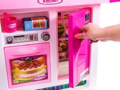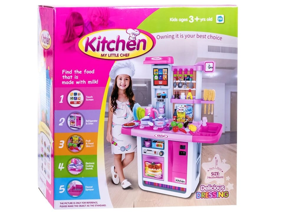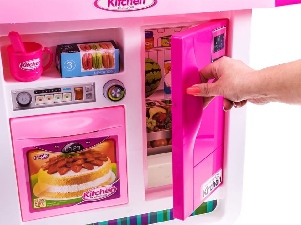 Prawie każde małe dziecko uwielbia pomagać w przygotowywaniu domowych posiłków, a jak nie lubi to zapewne polubi dzięki temu rewelacyjnemu zestawowi. Bezpieczna kuchnia do zabaw w dom, restauracje, bar- to właśnie propozycja dla Państwa pociech. Świetny pomysł na prezent dla małych przyszłych kucharzy, pomocników kucharzy, restauratorów itp. Zabawa w gotowanie rozwija wyobraźnię dziecka, uczy poznawania zasad gotowania, uczy obowiązków domowych. Czysta przyjemność "zjeść" pyszny posiłek przygotowany przez własne dziecko. Mały kucharz będzie mógł bez problemu teraz urządzić przyjęcie urodzinowe dla swoich lalek i misiów. Jeszcze większą frajdą jest to że podczas zabawy kuchnia posiada lodówkę do przechowywania żywności, piekarnik, zlewozmywak i wszystko co jest niezbędne w kuchni.
