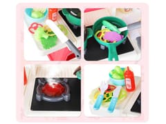 Zestaw zawiera:- 1 x kuchnia- 1 x garnek- 1 x patelnia- 2 x pokrywka- 3 x talerz- 1 x miska- 2 x kubek- 1 x koszyk- 2 x pojemnik z zamknięciem- 1 x pojemnik z zamknięciem (sos kwaśny)- 2 x nóż- 4 x łyżka- 1 x widelec- 1 x szpatułka- 1 x płyn do mycia- 1 x gąbka do mycia- 2 x pieprz- 1 x sos sojowy- 1 x ketchup- 1 x sos- 2 x dżem- 5 x kartonowe opakowania żywnościowe- 1 x banan- 1 x gruszka- 2 x brokuł- 1 x marchewka- 1 x ziemniak- 1 x ogórek- 1 x kukurydza- 2 x groszek- 2 x kanapka- 6 x plasterek pomidora/papryki- 2 x plasterek sera- 4 x plasterek cebuli- 2 x listek sałaty- 1 x tablica- 1 x opakowanie kredy- 1 x menu- 1 x kartonowa ścianka imitująca prawdziwe jedzenie (na tył kuchni)- naklejki