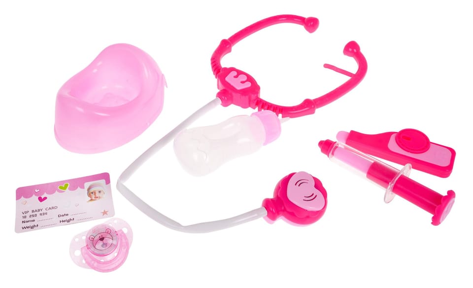 - lalka Marysia, - nocniczek, - smoczek magnetyczny, - strzykawka magnetyczna, - stetoskop na baterie z efektami migającego światła i odgłosami bicia serca, - termometr, - butelka na wodę, - identyfikator.