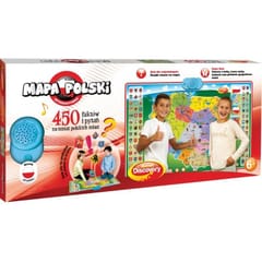 Interaktywna Mapa Polski 450 faktów i pytań na temat polskich miast. Innowacyjna Mapa Polski, która dostarcza wiedzy na temat naszego kraju. Posiada panel dotykowy z aktywnymi ikonkami, pod którymi kryją się informacje dotyczące historii i geografii, a nawet polski hymn – Mazurek Dąbrowskiego! Mapa nie tylko uczy, ale też bawi. W trybie quiz dla najmłodszych Dzieci będą musiały wskazać właściwe położenie polskich miast. Trudniejsza wersja testu , zatytułowana Super Quiz, pozwoli całej rodzinie włączyć się w emocjonującą rozgrywkę. Jej celem jest udzielenie poprawnej odpowiedzi na pytania z zakresu herbów, znanych osób, budowli i polskich miast. Mapę można zawiesić na ścianie albo bawić się nią na podłodze. Najważniejsze, aby było Wam wygodnie! Produkt przeznaczony jest dla graczy od szóstego roku życia.