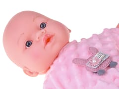 - brzuszek z materiału sprawia, że lalka jest miękka i niewiele waży. Dzięki temu nawet mniejsze dziecko poradzi sobie z noszeniem zabawki