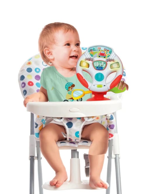 Lusterko i dźwignia biegów są ruchome, a mechaniczne funkcje pomagają dziecku rozwijać sprawność manualną.
