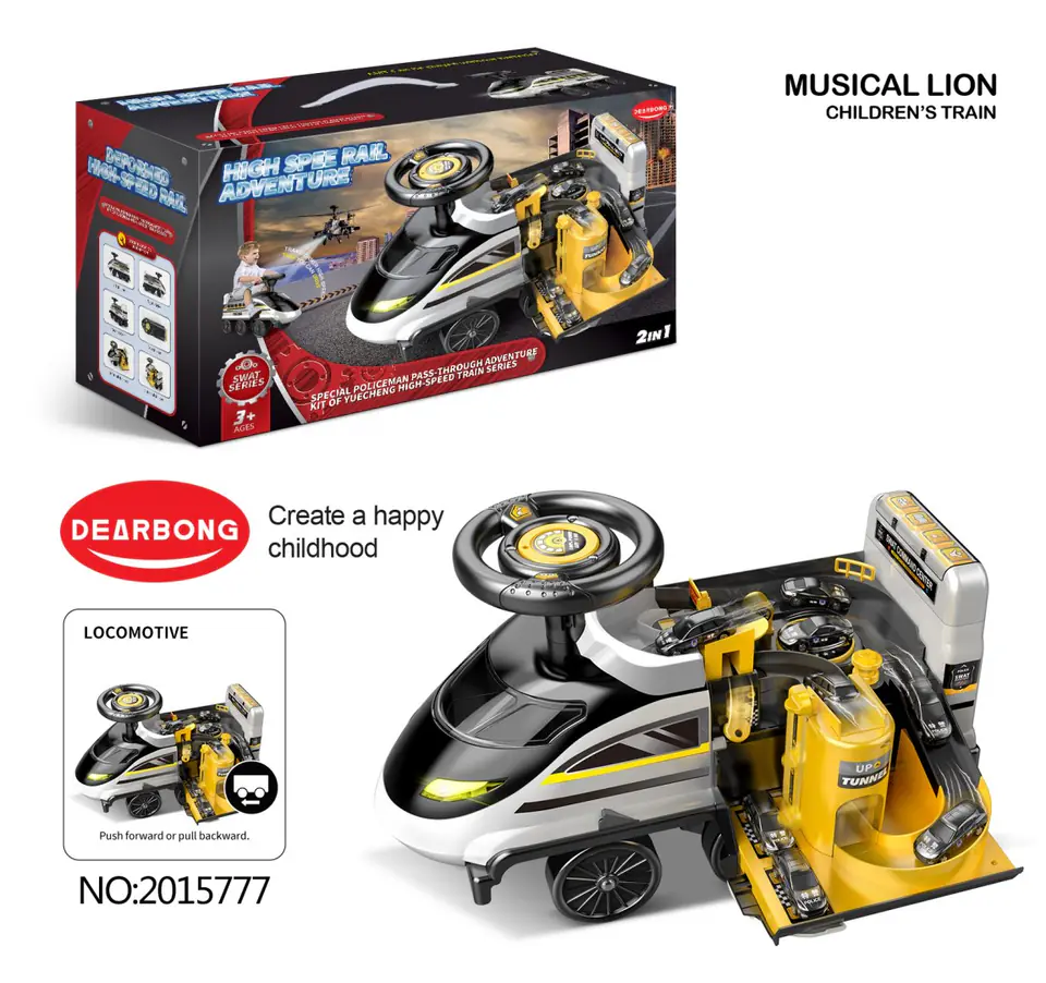 | Interaktywny jeździk - lokomotywa z parkingiem policyjnym i efektami dźwiękowymi oraz świetlnymi to propozycja dla dzieci od 3-go roku życia. Zabawka wykonana została z wysokiej jakości, wytrzymałego i nietoksycznego tworzywa sztucznego. Lokomotywa posiada 6 kół w tym dwa przednie skrętne. Pod siedzeniem znajduje się rozkładany parking policyjny ze zjeżdżalniami, ruchomą windą, otwieranym szlabanem, podnośnikiem oraz obrotowym kółkiem. Wszystkie ruchome elementy sterowane są ręcznie. Pod parkingiem jest dodatkowo schowek na skarby dziecka. Również z przodu lokomotywy mamy otwieraną szybkę przednia z wolną przestrzenią na różne drobnostki. Boki lokomotywy wyposażono w wysuwane podnóżki dla dziecka. Zabawka zasilana jest bateriami typu 2 x 1,5V AA - kierownica oraz bateriami typu 2 x 1,5V AA - panel dźwiękowy, w zestawie brak baterii. W kierownicy umiejscowiono przycisk uruchamiający kolorowe migające światełka. Z tyłu lokomotywy jest natomiast panel dźwiękowy z przyciskami po naciśnięciu na które słychać melodie, opowiadania oraz odgłosy zwierząt. Lektor posługuje się językiem angielskim. Lokomotywa ma świecące światełka przednie. Funkcje: - przycisk świetlny w kierownicy - migające różnokolorowe światełka, - panel muzyczny z tyłu lokomotywy z muzyką, opowiadaniami i odgłosami zwierząt, - świecące światła przednie, - stabilna konstrukcja, - 6 kółek, - ruchoma kierownica, - ruchome koła przednie, - rozkładany parking pod siedzeniem, - ruchome elementy parkingu, sterowane ręcznie - winda, szlaban, podnośnik, obrotowe kółko, - schowek na drobiazgi pod parkingiem i na przodzie lokomotywy pod szybką imitującą przednią szybę lokomotywy, - wysuwane podnóżki po bokach jeździka. | |