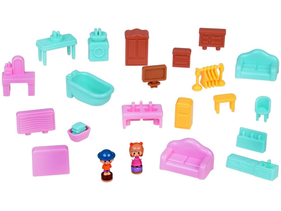 - Elementy wyposażenia: Zestaw zawiera mebelki i dekoracje, które można dowolnie rozmieszczać.