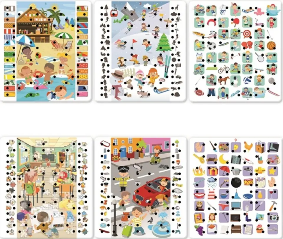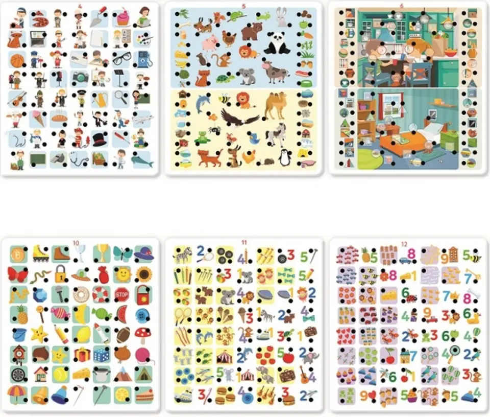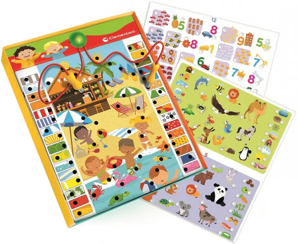 Dzięki 12 zadaniom dzieci mogą zapoznać się z podstawowymi pojęciami takimi jak: kształty, kolory, liczby i ilości a także rozwinąć zmysł obserwacji, umiejętność porównywania, kojarzenia i klasyfikowania.