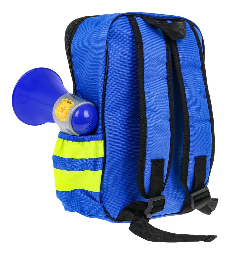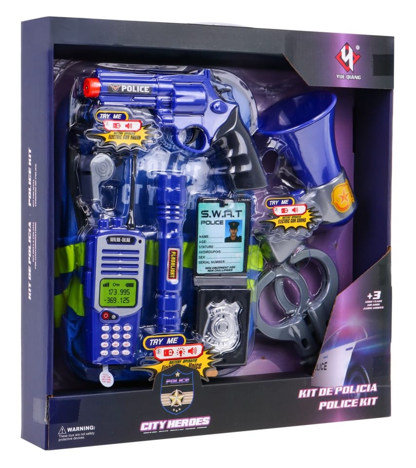 | Bogato wyposażony, interaktywny, realistyczny zestaw policyjny dla dzieci od 3-go roku życia. Zestaw składa się z wygodnego, pojemnego plecaczka i akcesoriów policyjnych. Zabawka posiada funkcje dźwiękowe (pistolet, megafon, krótkofalówka) i świetlne (krótkofalówka i latarka). Zasilanie bateriami 6 x AG13 (baterie znajdują się w zestawie).Funkcje zestawu:-pojemny plecak mieści wszystkie akcesoria z zestawu,- pistolet z odgłosami wystrzału,- megafon z nagłośnieniem,- krótkofalówka z efektami dźwięku i światła,- latarka z efektem światła. | |