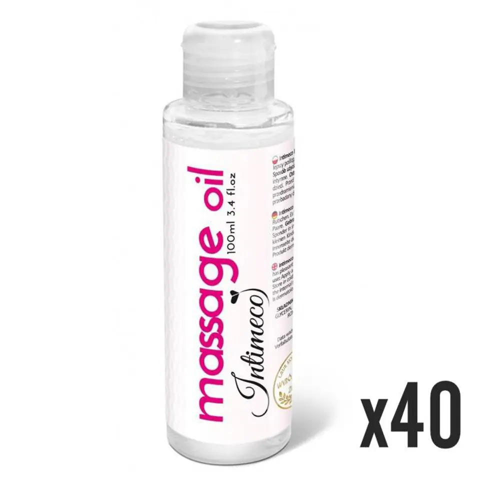Massage oil INTIMECO to unikatowe połączenie olejku do masażu oraz nawilżającego żelu intymnego dzięki czemu powstała unikalna formuła zapewniająca maksymalne doznania. Produkt wysokiej jakości, bezbarwny nie pozostawia plam i bardzo dobrze się wchłania. Doskonały podczas gry wstępnej, seksu klasycznego. Olejek stanowi najlepszą podstawę dobrego seksu. Powoduje uczucie idealnego nawilżenia a tym samym zapewnia pełną satysfakcję. Może być używany zależnie od potrzeby. Produkt posiada wszelkie atesty, przebadany dermatologicznie i klinicznie. Nie uczula, nie podrażnia i jest całkowicie bezpieczny. Do zastosowania również z prezerwatywą. Butelka została wyposażona w wygodne zamknięcie ułatwiające aplikację kosmetyku.