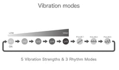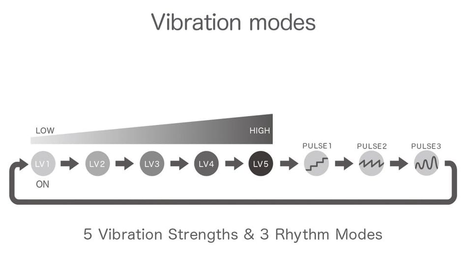 - 8 cichych trybow pracy: 5 poziomow intensywności oraz 3 pulsacyjne rytmy.