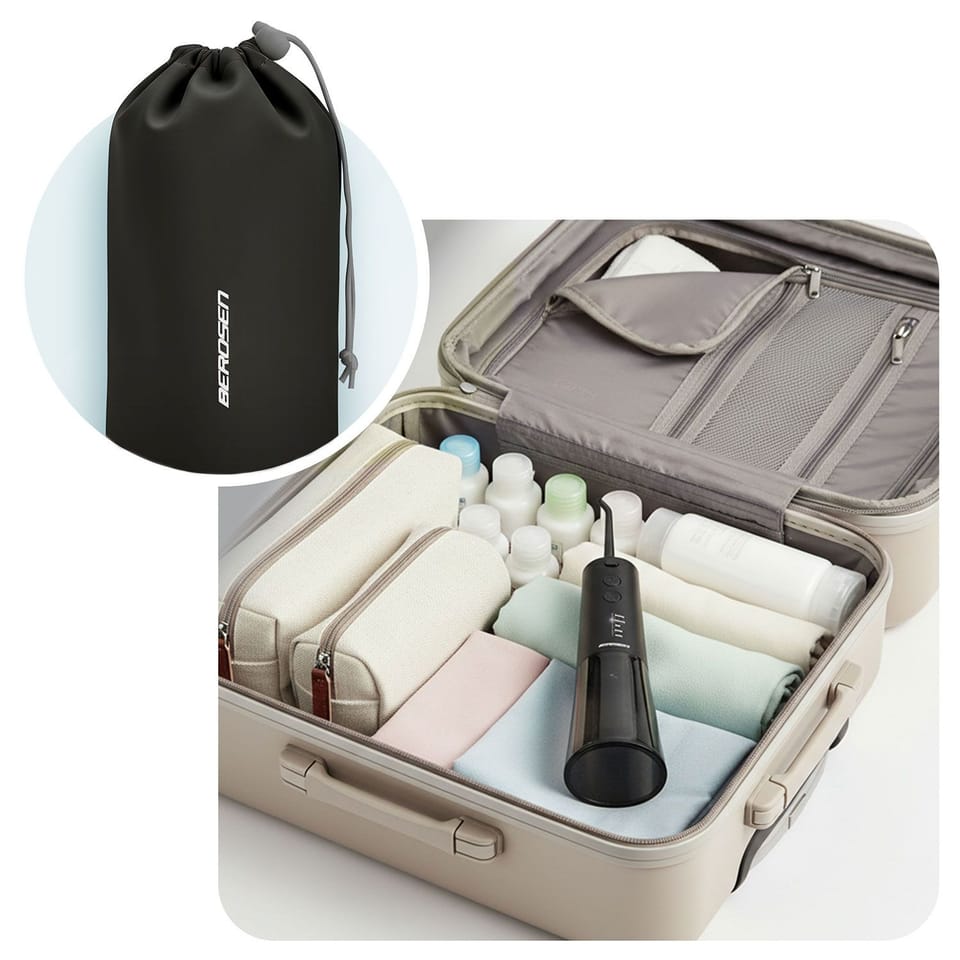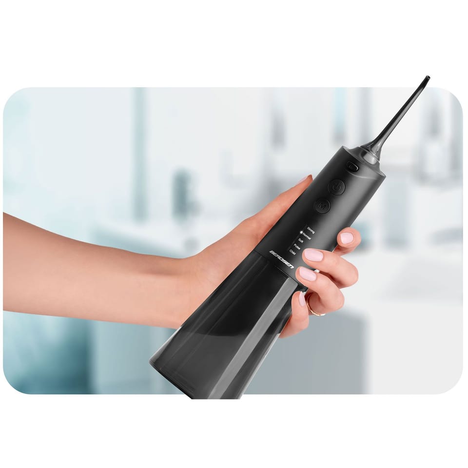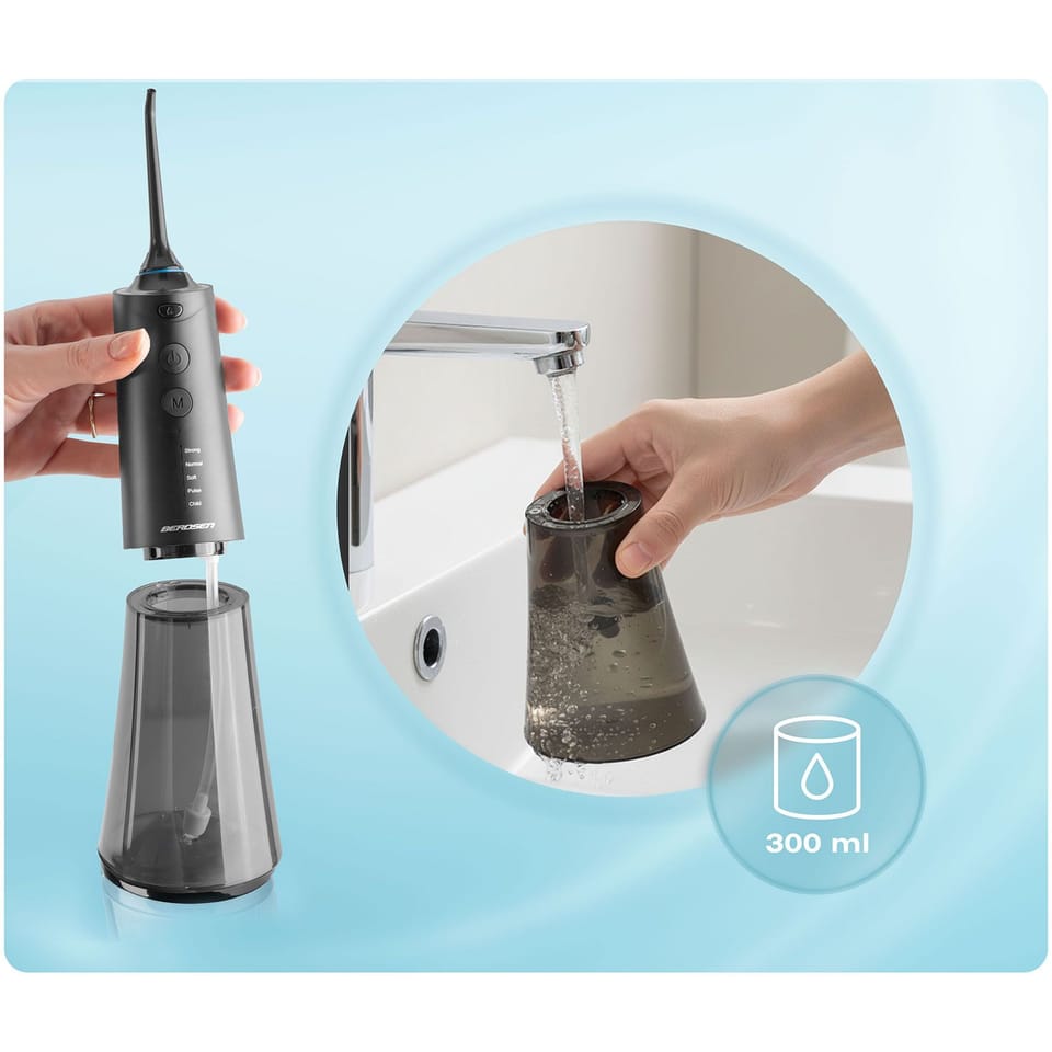 Irygator Berdsen to kompaktowe urządzenie, które zabierzesz ze sobą na wyjazd w delegację lub urlop. Mieszcząc w sobie duży 300 mililitrowy pojemnik na wodę, jest niewiele większy od szczoteczki elektrycznej.