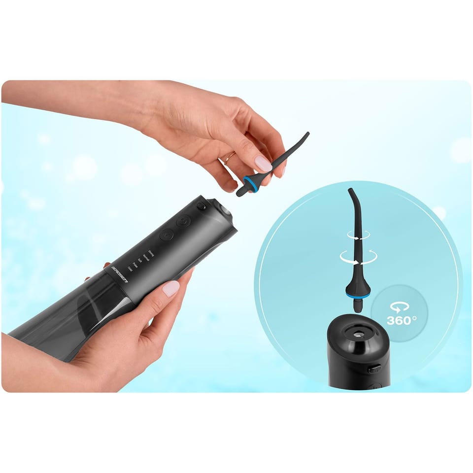 - Dłuższa praca bez przerw: większy zbiornik pozwala na dłuższą irygację bez przerw na uzupełnienie wody, co jest szczególnie korzystne dla osób z aparatami ortodontycznymi czy mostami.