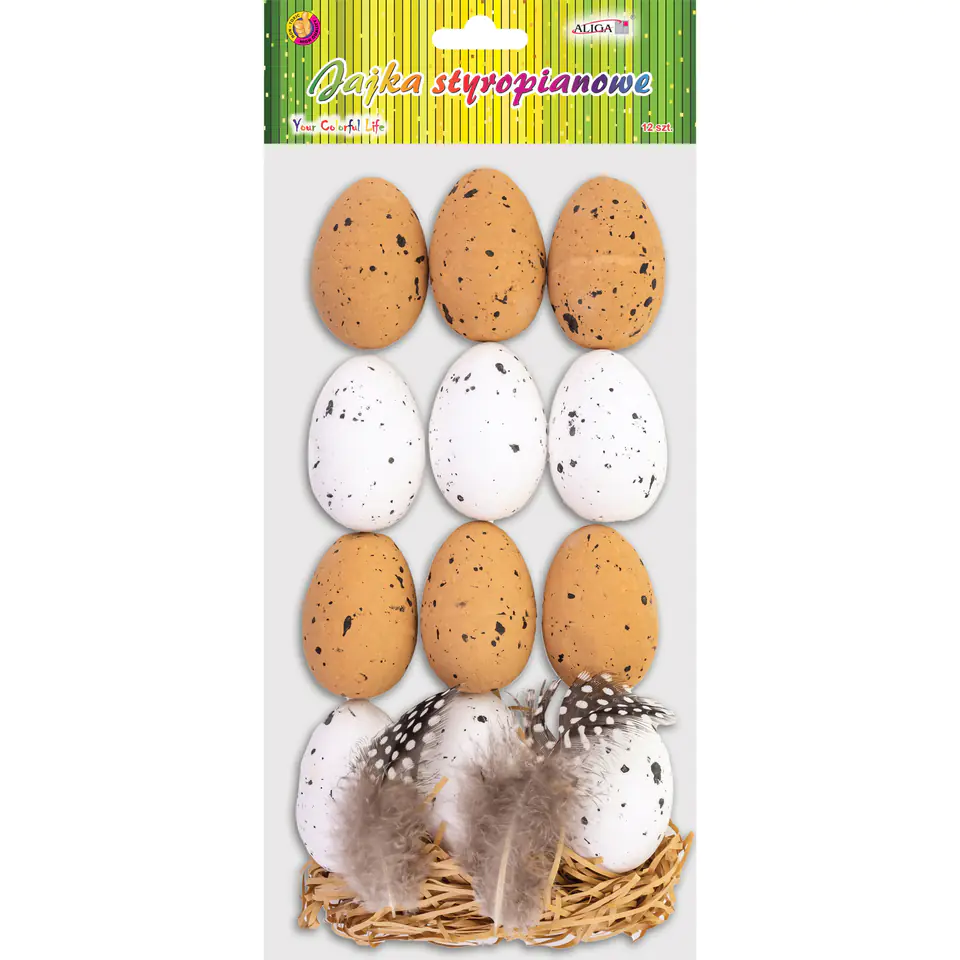 Jajka styropianowe, piórka, paski zestaw 12szt. WPJ-4765 ALIGA