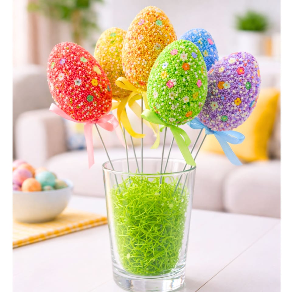 Jajka doskonale sprawdzą się jako ozdoba na stole wielkanocnym. Dzięki swoim delikatnym kolorom i wielkanocnemu charakterowi, stanowią świetny wybór na świąteczne dekoracje do domu, ogrodu czy biura.