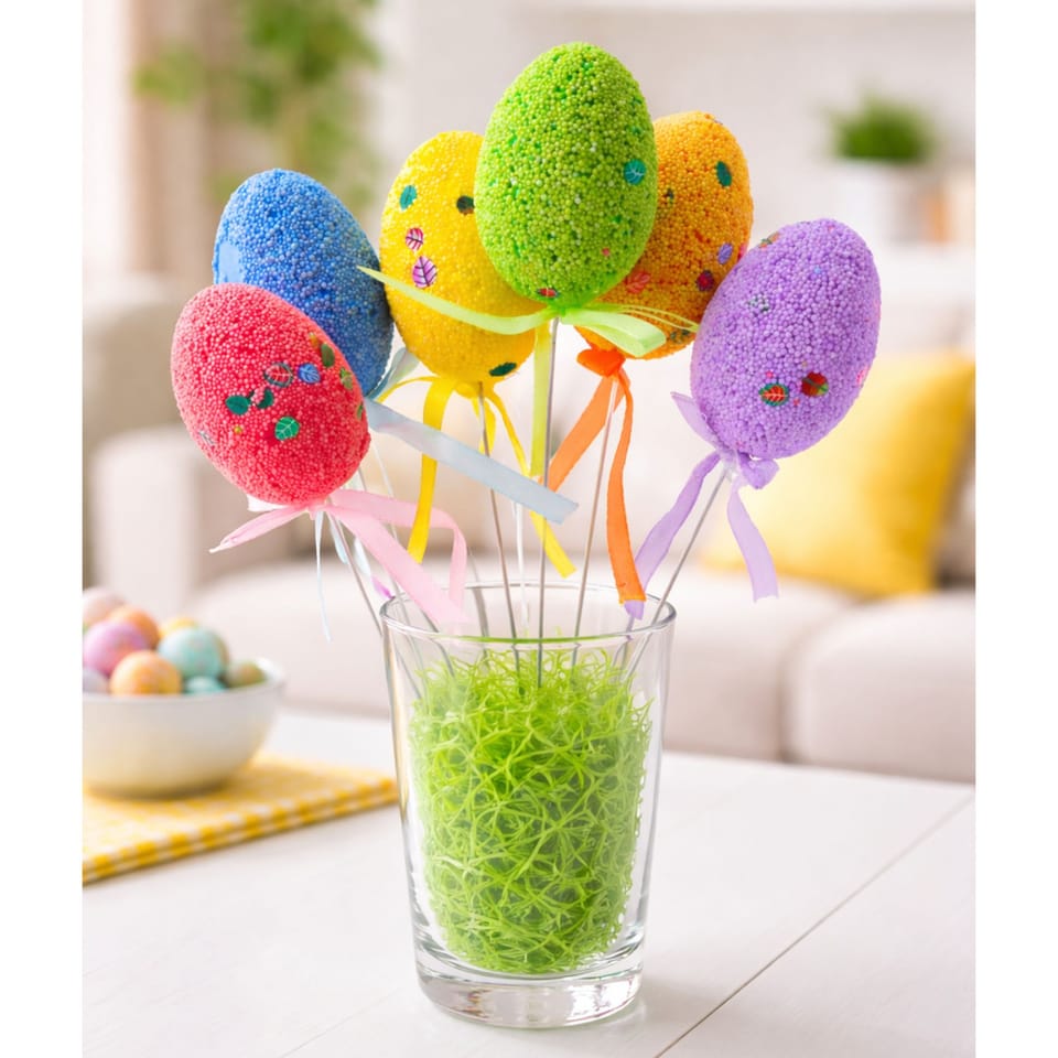 Jajka doskonale sprawdzą się jako ozdoba na stole wielkanocnym. Dzięki swoim delikatnym kolorom i wielkanocnemu charakterowi stanowią świetny wybór na świąteczne dekoracje do domu, ogrodu czy biura.