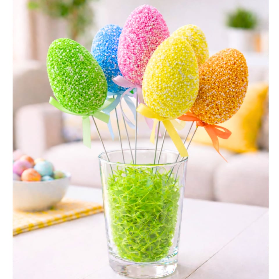 Jajka doskonale sprawdzą się jako ozdoba na stole wielkanocnym. Dzięki swoim delikatnym kolorom i wielkanocnemu charakterowi, stanowią świetny wybór na świąteczne dekoracje do domu, ogrodu czy biura.