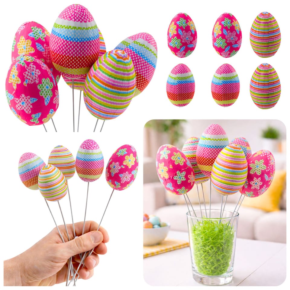Jajka można umieścić w stroikach, doniczkach, bukietach lub innych dekoracjach, tworząc unikalne aranżacje w domu, biurze czy restauracji. Dzięki elastycznemu drucikowi, dekoracje można dowolnie formować i dostosowywać do własnych kompozycji, co sprawia, że ich użycie jest wyjątkowo łatwe i praktyczne. Wykonane z lekkiego i trwałego styropianu, są odporne na uszkodzenia, a jednocześnie bardzo łatwe w obsłudze.