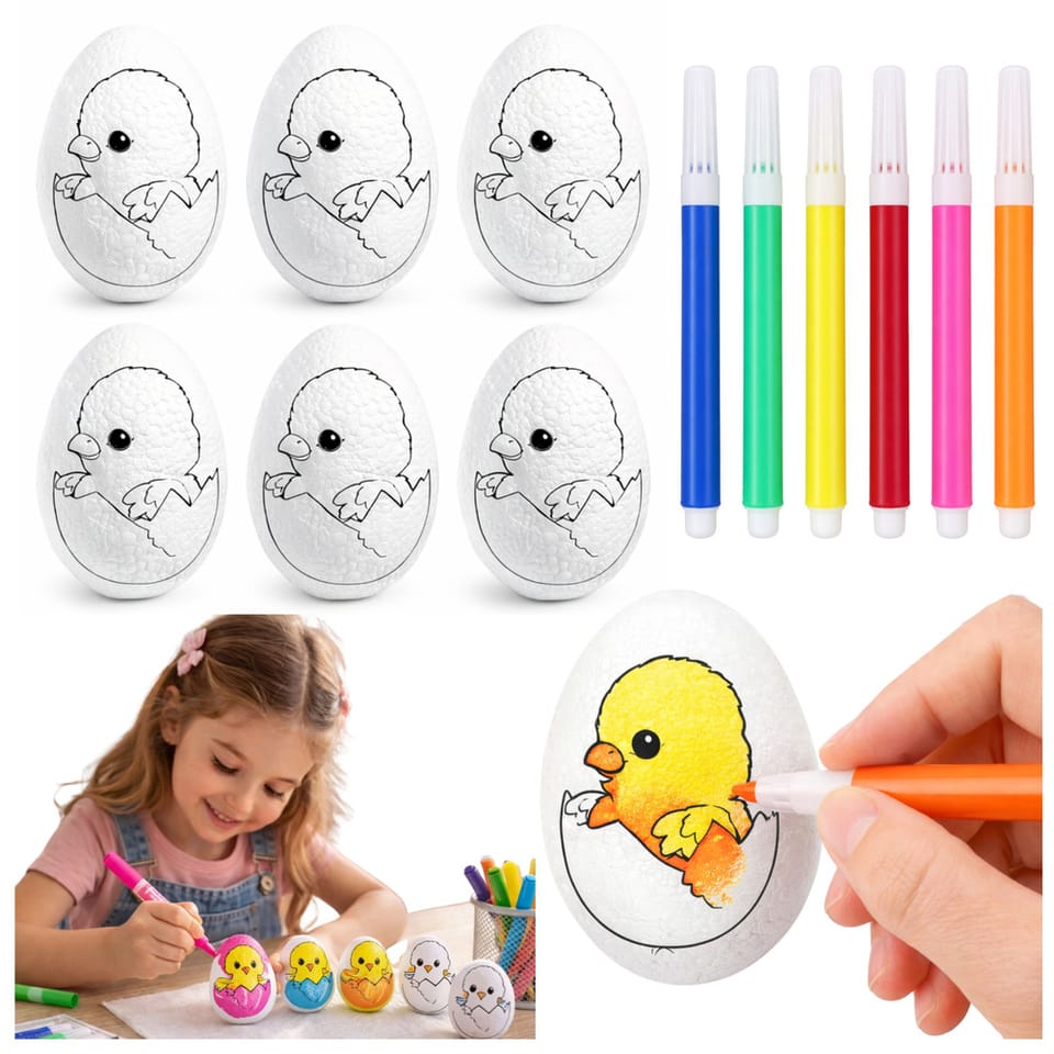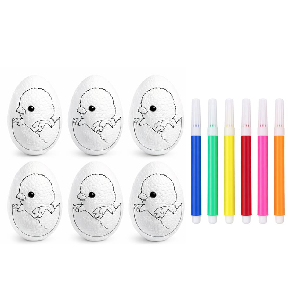 ? JAJKA STYROPIANOWE DO MALOWANIA 6 SZTUK Z FLAMASTRAMI ?