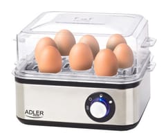 Jajowar na 8 jaj Dużą zaletą tego urządzenia jest to, że w zależności od ilości nalanej wody sami wybieramy czy chcemy ugotować jajko na miękko, średnio twardo czy twardo! Wyraźnie widoczna miarka pozwala bez problemu nalać odpowiednią ilość wody! Szybko i bez wysiłku oraz stania przy kuchence przygotujemy idealne śniadanie, ale i składniki na sałatkę czy pastę! Co więcej, w trakcie gotowania lampka kontrolna informuje nas o pracy urządzenia. Po wyparowaniu wody rozlega się dźwięk i dioda wskaźnika gaśnie- dochodzi do automatycznego wyłączenia się urządzenia. Moc maksymalna do 800 W znacznie skraca czas gotowania. Gotuj od 1 do 8 jaj każdorazowo Wybierz, czy chcesz ugotować jajka na miękko, średnio czy twardo. Automatyczne wyłączanie z sygnałem dźwiękowym Lampka kontrolna Miarka na wodę z igłą do nakłuwania jajek Moc maksymalna: 800W Moc: 500W