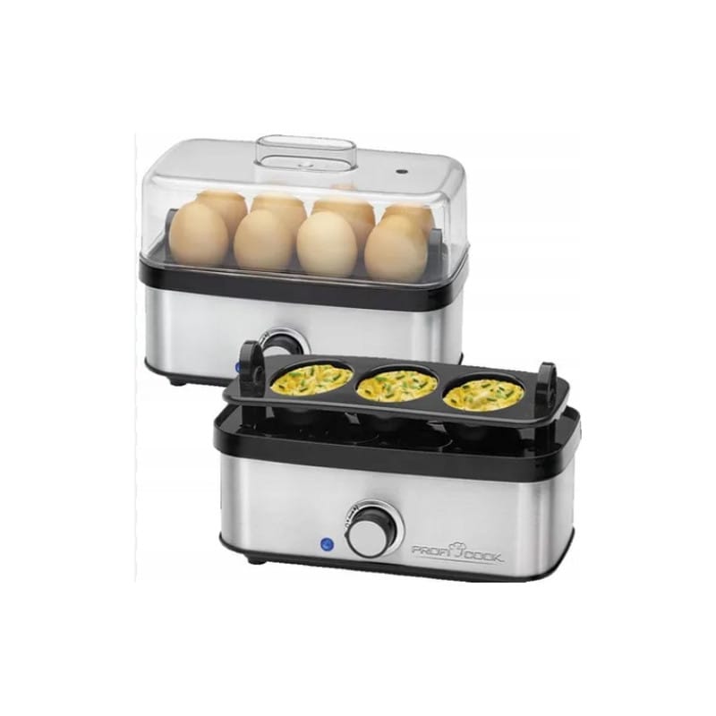 NAJWYŻSZEJ JAKOŚCIJAJOWAR DO JAJEK I OMLETÓWRENOMOWANEJ FIRMY PROFICOOKMODEL: PC-EK 1275Urządzenie przygotuje idealne jajka, bez konieczności odliczania i kontrolowania czasu.Po wlaniu odpowiedniej ilości wody do niecki urządzenia, osiągniesz ulubiony stan twardości gotowanych jaj - na miękko, średnio i zupełnie na twardo.Za jednym razem ugotujesz 8 jaj.Dzięki ProfiCook PC-EK 1275 klasyczne francuskie śniadanie może gościć na twoim stole bez żadnego wysiłku. Pozornie proste ugotowanie jajka na miękko może być nie lada wyzwaniem.Nie dotyczy to sytuacji, w której korzystasz z jajowara. Urządzenie samo dopasowuje czas gotowania do twardości jajek. Musisz tylko wybrać czy chcesz ugotować jaja na miękko, średnio czy na twardo.Odmierzając odpowiednią ilość wody dołączoną do urządzenia miarką, umieszczasz jaja na podkładce i zamykasz urządzenie.Gdy jajka będą gotowe, urządzenie wyda sygnał dźwiękowy, aby móc go wyłączyć. Ponadto jajowar posiada demontowalną tacę do przygotowywania mini omletów.Nieskomplikowana, prosta budowa i trwałe materiały sprawiają, że urządzenie długo i stabilnie pracuje. Dzięki nieprzywierającej powłoce, jajowar łatwo można utrzymać w czystości. Najważniejsze cechy urządzenia do gotowania jaj, jajowaru ProfiCook PC-EK 1275:Obudowa ze stali nierdzewnejPrzygotowanie do 8 jajDemontowalna tacka do omletówPrzełącznik włącz / wyłączSygnał akustycznyDemontowalny uchwyt na jajkaPrzezroczysta pokrywa wykonana z tritanu (bez BPA)Zlewka pomiarowa z jajkiem i nakrętkąPłytka grzewcza nieprzywierającaOznaczenia CE - spełnia wszystkie restrykcyjne normy UEZasilanie: 230 V~, 50–60 Hz, 400 W NAKŁUWACZ DO JAJEKNakłuwacz to niewielka igła, która służy do wykonywania niewielkich otworów w skorupce jajka. Jest to przydatne podczas gotowania jajek na miękko lub na twardo.Nakłuwaczem przebija się grubszy koniec jajka, czyli tam, gdzie znajduje się powietrzna komora.Dzięki temu para wodna może wydostać się z jajka, zapobiegając gromadzeniu się nadmiaru ciśnienia wewnątrz skorupki. Jajka na gotują się równomiernie.Dlaczego warto kupić urządzenie do gotowania jajek ProfiCook PC-EKŁatwość obsługiProsty proces gotowania – wystarczy odmierzyć wodę dołączoną miarką, umieścić jajka na podkładce i zamknąć urządzenie.WszechstronnośćMożliwość przygotowania nie tylko jajek, ale także mini omletów dzięki demontowalnej tacy do omletów.Łatwość utrzymania czystościPłytka grzewcza z nieprzywierającą powłoką oraz demontowalny uchwyt na jajka ułatwiają czyszczenie urządzenia.Idealna na prezentUrządzenie posiada eleganckie opakowanie, dzięki czemu idealnie sprawdzi się, jako prezent!Wymiary urządzenia:Wymiary: (ok. szer. x wys. x gł.) i wagaJednostka: 225 x 185 x 130 mm; 0.7 kgOpakowanie: 275 x 223 x 178 mm; 1.0 kg Produkt został odznaczony certyfikatem FOCUS - TEST DEUTSCHLANDS BESTECertyfikat TEST DEUTSCHLANDS BESTE został przyznany na podstawie badań przeprowadzonych przez „Germanys best household electronics”. W ramach testu porównane zostały produkty z ponad 20 000 marek z 274 segmentów rynkowych.Celem wyróżnienia „Focus” jest wskazywanie produktów cieszących się największym uznaniem konsumentów. Certyfikat przyznany jest na podstawie badań niemieckiego rynku i potwierdza wysoką jakość produktów a także świadczy o dużym zaufaniu konsumentów i renomie marki.slimtex