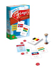 Gra "Jakie to flagi" doskonale łączy przyjemne z pożytecznym. Ta gra to emocjonująca zabawa, a jednocześnie znakomita okazja do nauki identyfikacji flag państwowych (55 krajów). Gracze mogą również przy okazji dowiedzieć się i nauczyć nazw stolic państw, wielkości ich powierzchni, liczby ludności itp. Gra adresowana jest do dzieci i dorosłych.55 kart, 55 tekturowych zetonów, 20 plastikowych zetonów, klepsydra, instrukcja