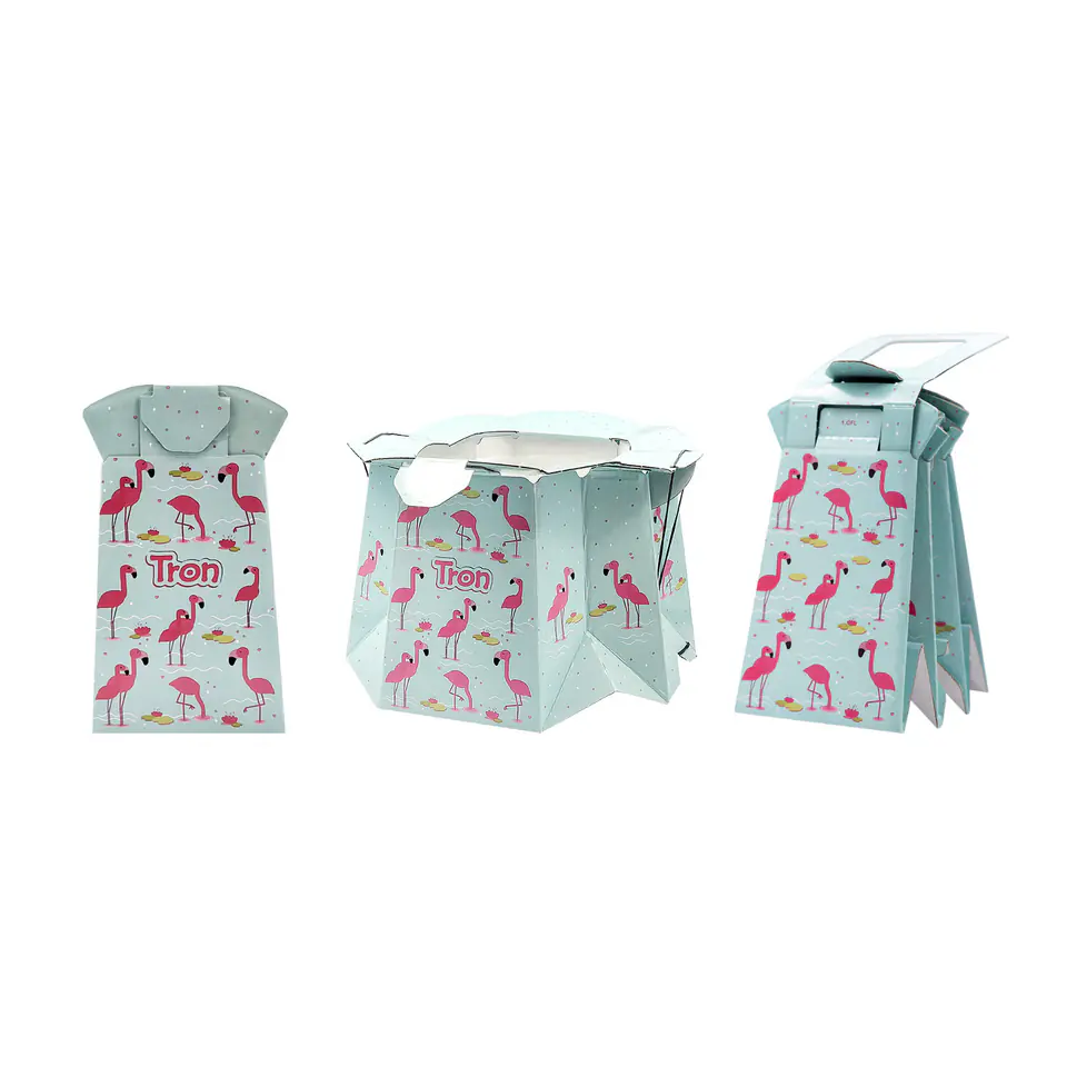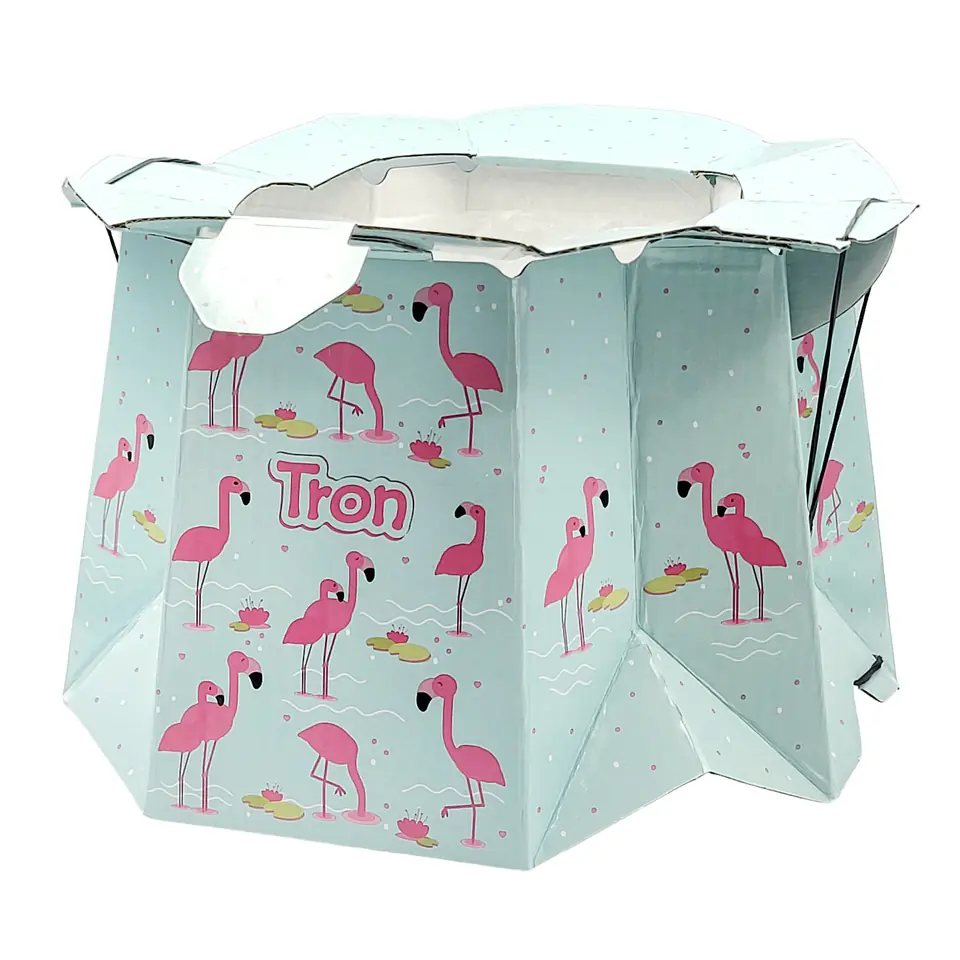 Specyfikacja- Rekomendowany wiek dziecka: od 1 do 6 lat (do 30 kg wagi).- Bezpieczeństwo i ekologia: nocnik TRON jest produktem ekologicznym, w całości biodegradowalnym, nie zawiera żadnych szkodliwych substancji.- Materiał: wykonany jest z utwardzonej tektury i folii ze specjalnego ekologicznego tworzywa.- Wzór: flamingi- Wymiary:- złożony: 16 x 9 x 3 cm- rozłożony : 16 cm x Ø 20 cm.