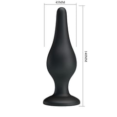 Delikatny silikonowy korek analny o idealnym opływowym kształcie. Użyj dużej ilości lubrykantu na bazie wody, aby uzyskać najbardziej komfortowe i przyjemne doznania. Długość: 14 cm, średnica max. 4,5 cm. Materiał: silikon