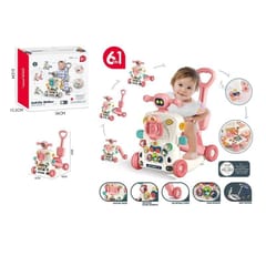 Chodzik Jeździk 6w1 EBZ6038 - Wszechstronna Zabawka Wspierająca Rozwój Twojego Malucha Chodzik Jeździk 6w1 EBZ6038 to innowacyjna zabawka wielofunkcyjna, która towarzyszy dziecku od pierwszych kroków aż po aktywną zabawę. Doskonały wybór dla dzieci już od 6. miesiąca życia. Funkcjonalność 6w1 czyni go nie tylko chodzikiem, ale również jeździkiem, bujakiem, stolikiem edukacyjnym i interaktywną zabawką rozwijającą umiejętności malucha. Najważniejsze funkcje i zalety: Chodzik-pchacz: Stabilna konstrukcja wspiera malucha w nauce chodzenia, pozwalając na bezpieczne stawianie pierwszych kroków. Jeździk-odpychacz: Maluch może aktywnie odpychać się nóżkami, co rozwija koordynację ruchową i wzmacnia mięśnie. Stolik edukacyjny: Wyjmowany interaktywny panel z dźwiękami, światełkami i różnorodnymi funkcjami edukacyjnymi zapewnia angażującą zabawę na długie godziny. Dziecko wygodnie może siedzieć przy stoliku. Bujak: Przekształcenie chodzika w bujak to idealne rozwiązanie dla spokojnej zabawy i relaksu. Skuter: Dla starszych dzieci - możliwość przekształcenia zabawki w mini pojazd do odpychania. Zabawki luzem: Wyjmowane elementy, w tym sorter kształtów na sznureczkach, które zapobiegają zgubieniu, rozwijają zdolności manualne i logiczne myślenie. Dodatkowe cechy: Interaktywny panel: Wyjmowany moduł w kształcie samochodzika, wyposażony w dźwięki, światełka oraz piszczek na kierownicy - wszystko, co uwielbiają maluchy! Bezpieczeństwo i wygoda: Solidne wykonanie i stabilna konstrukcja zapewniają bezpieczeństwo dziecka podczas użytkowania. Kolorowy design: Przyciągający wzrok wygląd, który zachęca dziecko do zabawy. Sorter kształtów: Kształty na sznureczkach wspierają naukę rozpoznawania kolorów i form, jednocześnie eliminując ryzyko zgubienia elementów. Korzyści dla rozwoju dziecka: Nauka chodzenia: Chodzik wspomaga pewne stawianie pierwszych kroków i rozwija koordynację ruchową. Rozwój sensoryczny: Interaktywne elementy z dźwiękami i światłami stymulują zmysły dziecka. Rozwój motoryczny: Aktywności związane z odpychaniem, sortowaniem i zabawą kształtami wspierają motorykę małą i dużą. Edukacja przez zabawę: Panel edukacyjny wprowadza malucha w świat dźwięków, kolorów i kształtów, zapewniając wartościową naukę. Zawartość zestawu: Chodzik/jeździk wielofunkcyjny Wyjmowany panel interaktywny Sorter kształtów na sznureczkach Stabilna konstrukcja z ergonomicznymi uchwytami Chodzik Jeździk 6w1 EBZ6038 to nie tylko zabawka, ale także wszechstronny pomocnik w rozwoju Twojego dziecka. Połączenie funkcjonalności, zabawy i bezpieczeństwa sprawia, że to idealny wybór na każdy etap dziecięcego rozwoju! Dane techniczne: Wiek: 6 miesięcy + Maksymalne obciążenie: Do 30 kg Wymiary pudełka: 56 x 51 x 15,5 cm Wymiary złożonego chodzika-pchacza: 44 x 58 x 40 cm