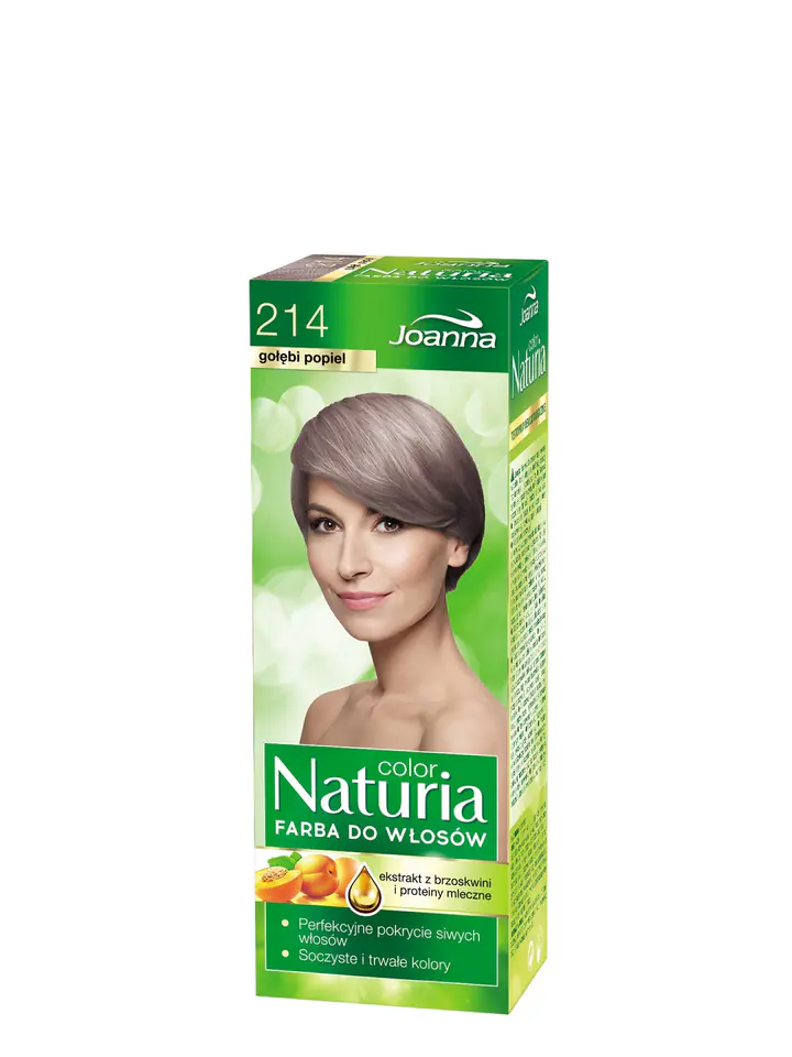 Joanna Naturia Color Farba do włosów Gołębi Popiel 214 doskonale pokrywa siwe włosy, trwale zapewniając im wybrany odcień.