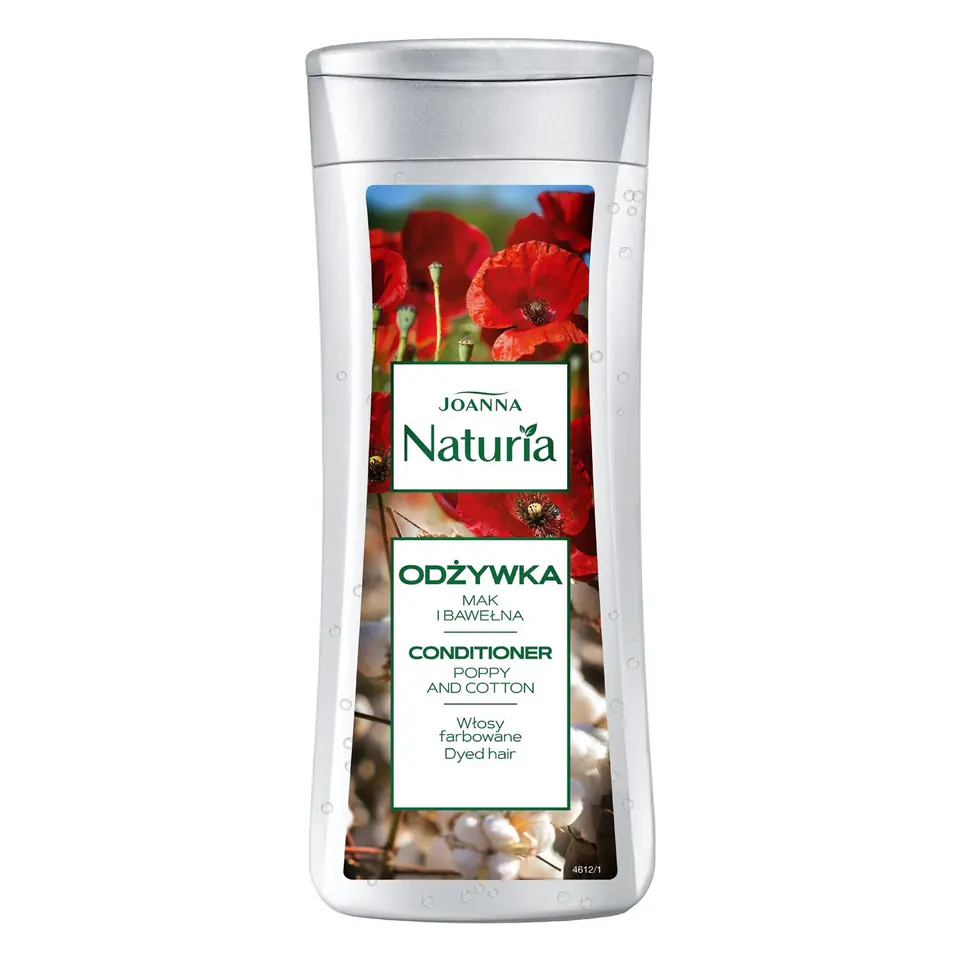 Joanna Naturia Odżywka Mak i bawełna powstała w oparciu o starannie dobrane naturalne składniki, które pielęgnują włosy farbowane.