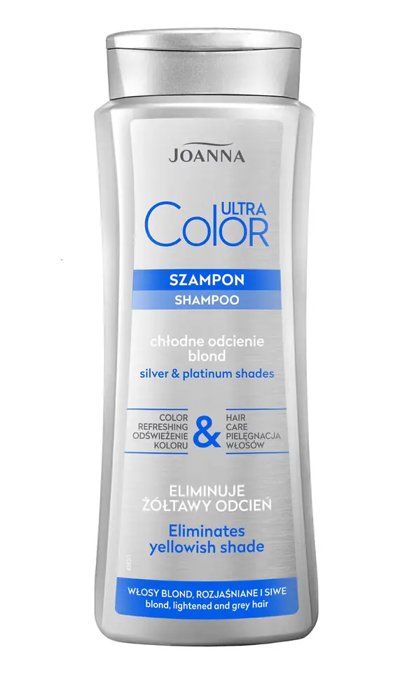 Joanna Ultra Color System Szampon do włosów blond, rozjaśnianych i siwych działa ochronnie i wzmacniająco na włosy, a dzięki specjalnemu systemowi koloryzacji włosy zyskują blask i wymarzony odcień.