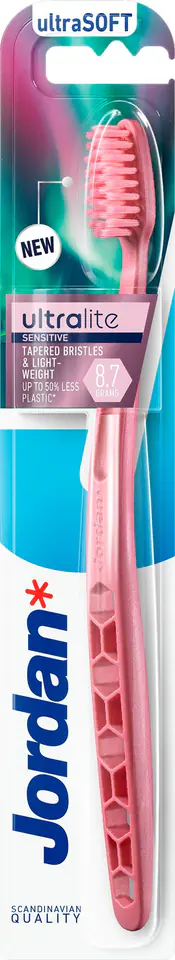 Jordan Ultralite to pierwsza tego typu szczoteczka do zębów. Czerpiąc inspirację z aktywnego skandynawskiego stylu życia, zaprojektowano zaawansowaną i lekką szczoteczkę do zębów, łącząc to, co najlepsze w skandynawskim myśleniu projektowym.