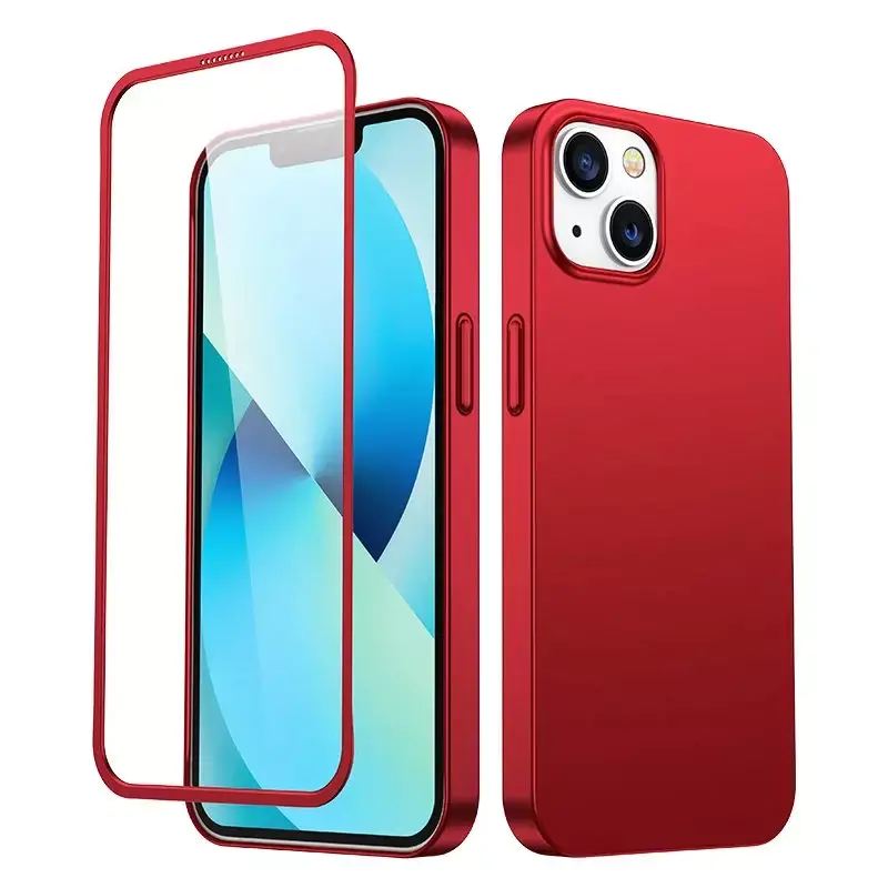 Joyroom 360 Full Case etui pokrowiec do iPhone 13 obudowa na tył i przód + szkło hartowane czerwony (JR-BP927 red)