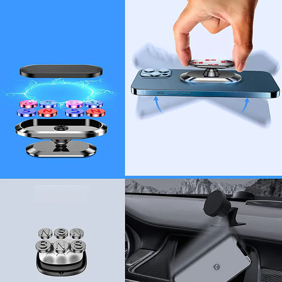 Ten uniwersalny uchwyt magnetyczny pozwala na łatwe i szybkie ustawienie telefonu pod dowolnym kątem. Nie zajmuje miejsca w samochodzie i nie blokuje żadnej kratki wentylacyjnej – wystarczy przykleić go na dowolną płaską powierzchnię w samochodzie. Przytrzyma Twój telefon pewnie i stabilnie, nawet na wymagających drogach.