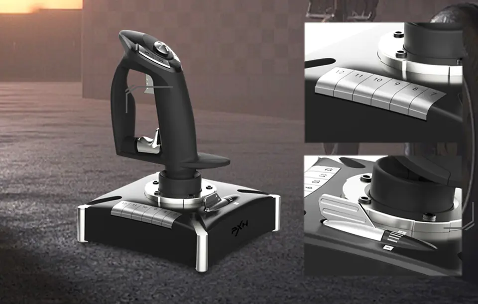 Przejmij stery i poczuj się jak pilot prawdziwego samolotu. Zestaw PXN-2119 Pro składa się z joysticka i osobnej dźwigni przepustnicy. Dzięki temu może zapewnić jeszcze wyższy poziom realizmu! Skrócony czas reakcji, płynne działanie i niezrównana precyzja – to tylko niektóre atuty tych urządzeń. Dostępny jest także 8-kierunkowy Hat Switch, aż 16 programowalnych przycisków i spust Rapid-Fire. Na uwagę zasługuje również szeroka kompatybilność i ergonomiczny design. Możesz też używać joysticka niezależnie.