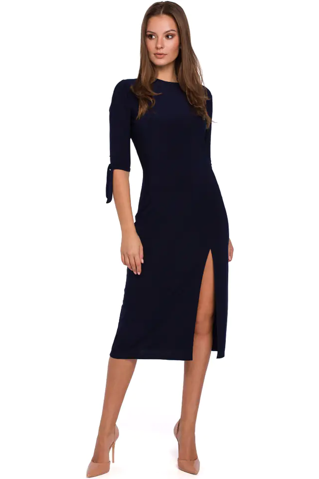 Ciekawa propozycja dla kobiet, które uwielbiają proste, dopasowane fasony. Dzięki elastycznej dzianinie i podkreślonej linii talii, pięknie formuje sylwetkę. Uroku dodają jej wiązania przy rękawach. Fason uniwersalny, który jest odpowiedni na wiele okazji!
