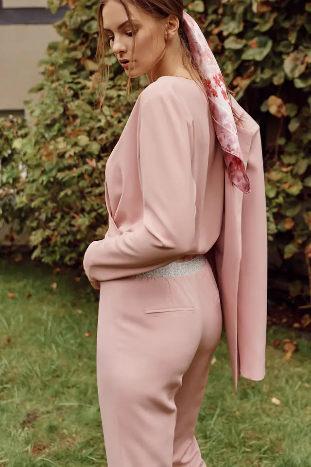 K035 Spodnie na kant z gumą w pasie - brudny róż kolor brudny róż, rozmiar L