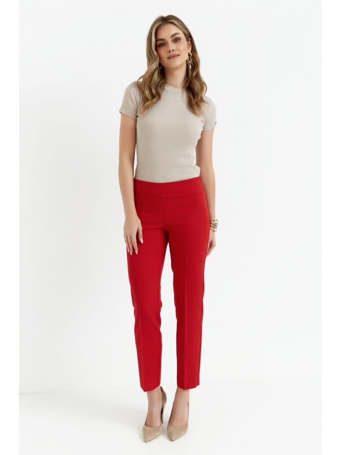 K055 Gładkie spodnie cygaretki - czerwone kolor czerwony, rozmiar XXL