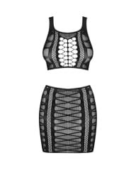 Odważ się wprowadzić do swojego życia odrobinę szaleństwa! Poczujesz się bosko, gdy założysz tę zjawiskową spódnicę i top. Kusząco zestawione materiały rozbudzą zmysły, podgrzeją atmosferę w sypialni oraz zadbają o piękny wygląd Twojego ciała. Nie wahaj się dłużej, musisz je mieć!Poznaj więcej szczegółów:- czarny zestaw – składający się ze spódnicy oraz topu- niebanalne detale – znajdziesz się w centrum uwagi- seksowne wycięcia – trudno je przeoczyć- materiał o niezwykłej elastyczności – idealnie przylgnie do ciała, eksponując kobiecą sylwetkę (90% nylon, 10% elastan)
