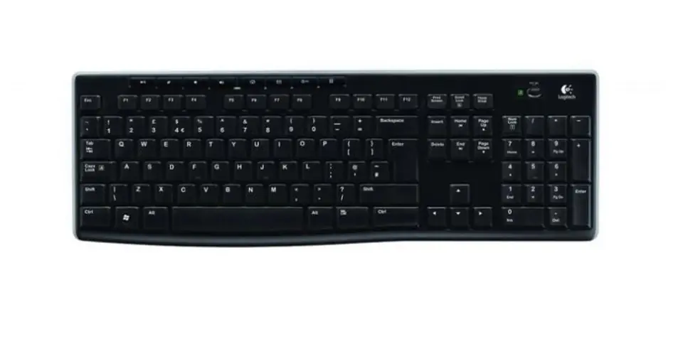 Logitech K270 Klawiatura bezprzewodowa Niezawodna łączność bezprzewodowa wszędzie tam, gdzie używasz klawiatury, dzięki odbiornikowi Logitech Unifying, który można powiązać z sześcioma zgodnymi myszami i klawiaturami.