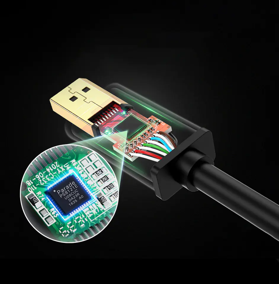 Pozłacane wtyczki są odporne na korozję i uszkodzenia. Inteligentny czip NXP i wielowarstwowa budowa zapewnia mocny sygnał i dobrą jakość transferu. Elastyczny kabel jest odporny na zginanie i trwały.
