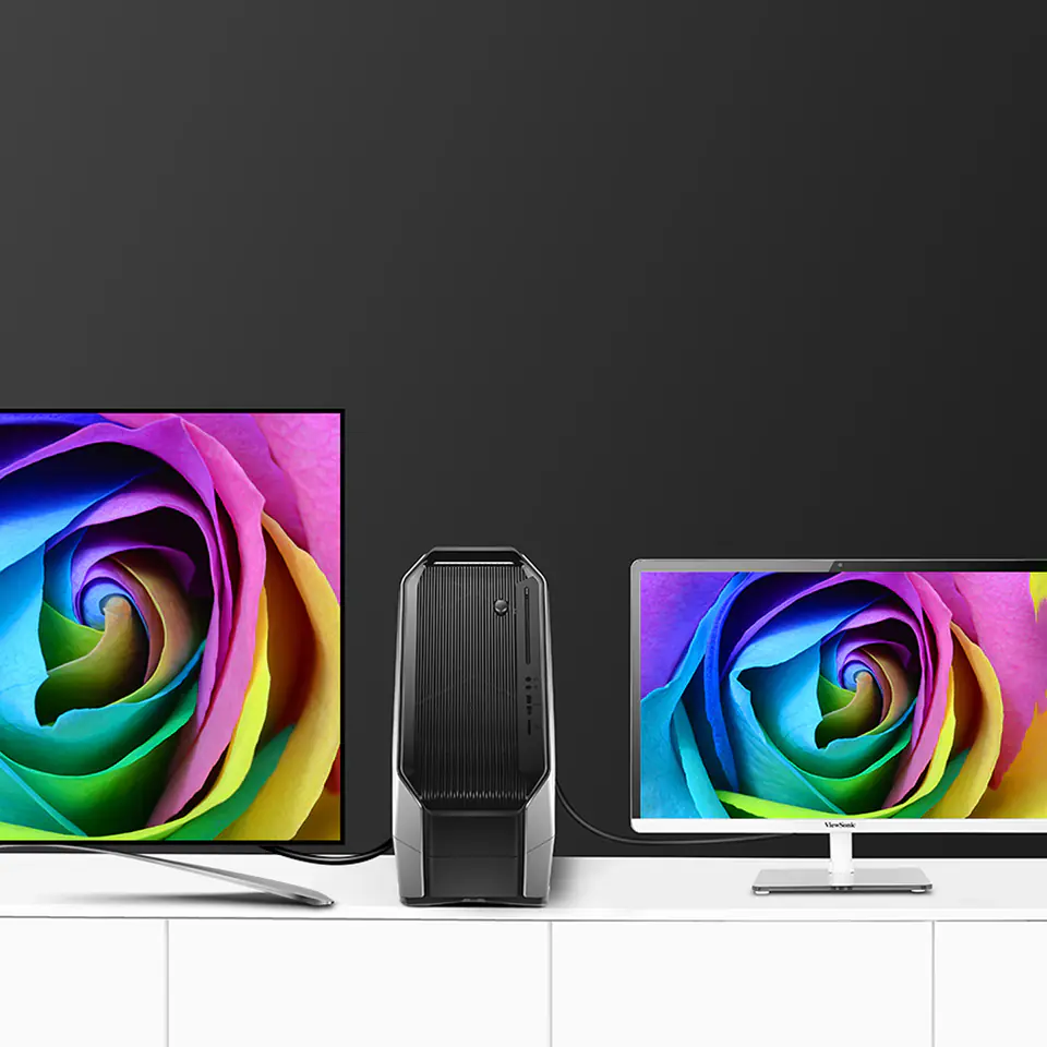 Ciesz się jakością 1080p Full HD (1920*1080p 60 Hz). Wybierz jeden z dwóch trybów pracy: mirror (wyświetla odbicie ekranu głównego) lub extended (umożliwia poszerzenie przestrzeni roboczej o nowy ekran).