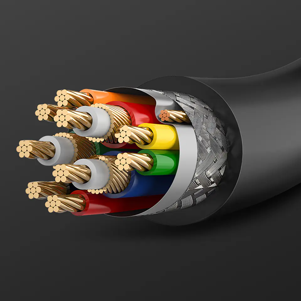 Pozłacane styki są odporne na korozję i utlenianie, są odporne na zużycie i uszkodzenia. Materiał ABS wygląda estetycznie i zapewnia długie użytkowanie przewodu. Wielowarstwowa budowa zapewnia stabilny transfer danych i bezpieczeństwo użytkowania.