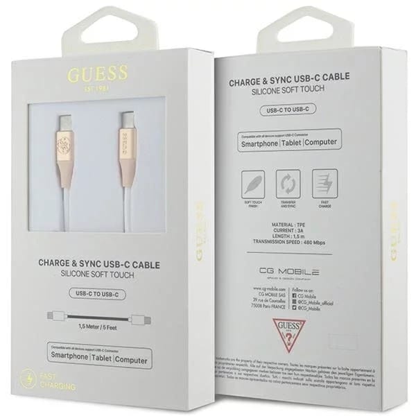 Kabel Guess GUCCLALRGDD USB-C do USB-C o długości 1,5 metra to stylowe i funkcjonalne rozwiązanie do szybkiego ładowania i przesyłania danych. Wykonany z najwyższej jakości materiałów, kabel łączy prestiżowy design z niezawodną technologią, oferując doskonałe parametry działania. Dzięki technologii Fast Charging zapewnia szybkie i wydajne ładowanie urządzeń takich jak smartfony, tablety i laptopy wyposażone w port USB-C.