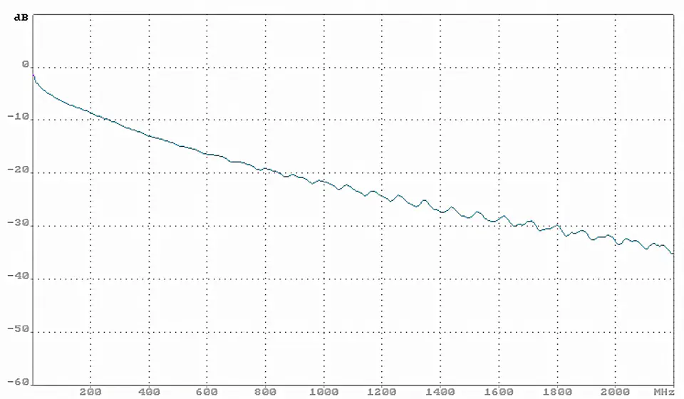 | Tłumienność przewodu na odcinku 100m: | 3.6 dB @ 50 MHz6.2 dB @ 100 MHz13 dB @ 500 MHz17.3 dB @ 862 MHz18.8 dB @ 1000 MHz23.2 dB @ 1500 MHz27.9 dB @ 2000 MHz |