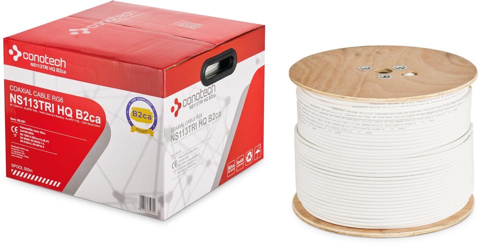 Certyfikowany przewód koncentryczny NS113-TRISHIELD-B2CA/500 z miedzianym rdzeniem 1.13 mm, przeznaczony do instalacji wymagających najwyższej jakości sygnału i bezpieczeństwa pożarowego (klasa B2ca - s1a,d0,a1, CPR). Ekranowanie Trishield w klasie A+ zapewnia bardzo wysoką odporność na zakłócenia. Bezhalogenowa powłoka LSZH o niskiej emisji dymu oraz certyfikat TÜV Rheinland potwierdzają zgodność z europejskimi normami.