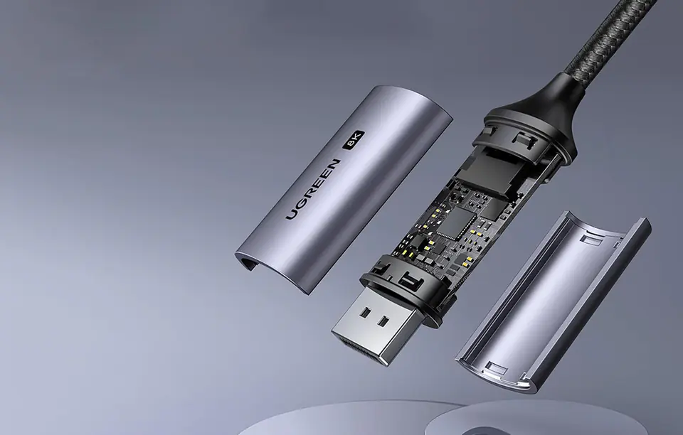 Kod produktu: 1025193Kabel Ugreen CM556 gwarantuje nie tylko wyjątkową jakość obrazu w rozdzielczości do 8K 60Hz, ale także płynność i stabilność transmisji. Dzięki zaawansowanym technologiom, takim jak HDR, HDCP2.3, eARC, VRR, i ALLM, zapewnia wyjątkowe wrażenia wizualne i audio, a także płynną rozgrywkę. Jego wszechstronność i kompatybilność sprawiają, że jest to idealny wybór zarówno dla profesjonalistów, jak i entuzjastów multimediów.Niezrównana jakość obrazuKabel Ugreen CM556 zapewnia wysoką jakość obrazu. Dzięki obsłudze rozdzielczości do 8K 60Hz oraz technologiom HDR, HDCP2.3 i eARC możesz cieszyć się nieskazitelnie czystym, szczegółowym obrazem z żywymi kolorami i głębokim kontrastem. To idealne rozwiązanie dla wymagających zastosowań, takich jak profesjonalna edycja wideo i zdjęć.Płynna rozgrywka bez zakłóceńDla graczy kabel Ugreen CM556 oferuje przewagę dzięki przepustowości do 32,4 Gb/s i wsparciu dla technologii VRR i ALLM. Te funkcje zapewniają płynniejszą rozgrywkę i redukcję opóźnień, co jest kluczowe zwłaszcza w szybkich grach FPS. To niezbędne narzędzie dla każdego, kto pragnie dominować na polu bitwy!Maksymalna wszechstronnośćKabel Ugreen CM556 obsługuje różne tryby wyświetlania, takie jak MST Daisy Chain, Samsung DeX Mode i Macbook Clamshell Mode.Szeroka kompatybilnośćTen kabel umożliwia podłączenie szerokiej gamy urządzeń. Jego kompatybilność z różnymi systemami operacyjnymi, w tym Windows, macOS, Linux, i iOS, sprawia, że jest to uniwersalne rozwiązanie dla każdego użytkownika.Wytrzymałość i niezawodnośćZaprojektowany z myślą o trwałości kabel Ugreen CM556 charakteryzuje się powłoką ze stopu aluminium i mocnym nylonowym splotem. Te materiały nie tylko zapewniają długotrwałą wydajność, ale także przyspieszają rozpraszanie ciepła, gwarantując stabilną transmisję obrazu przez długi czas.Najważniejsze cechy:
